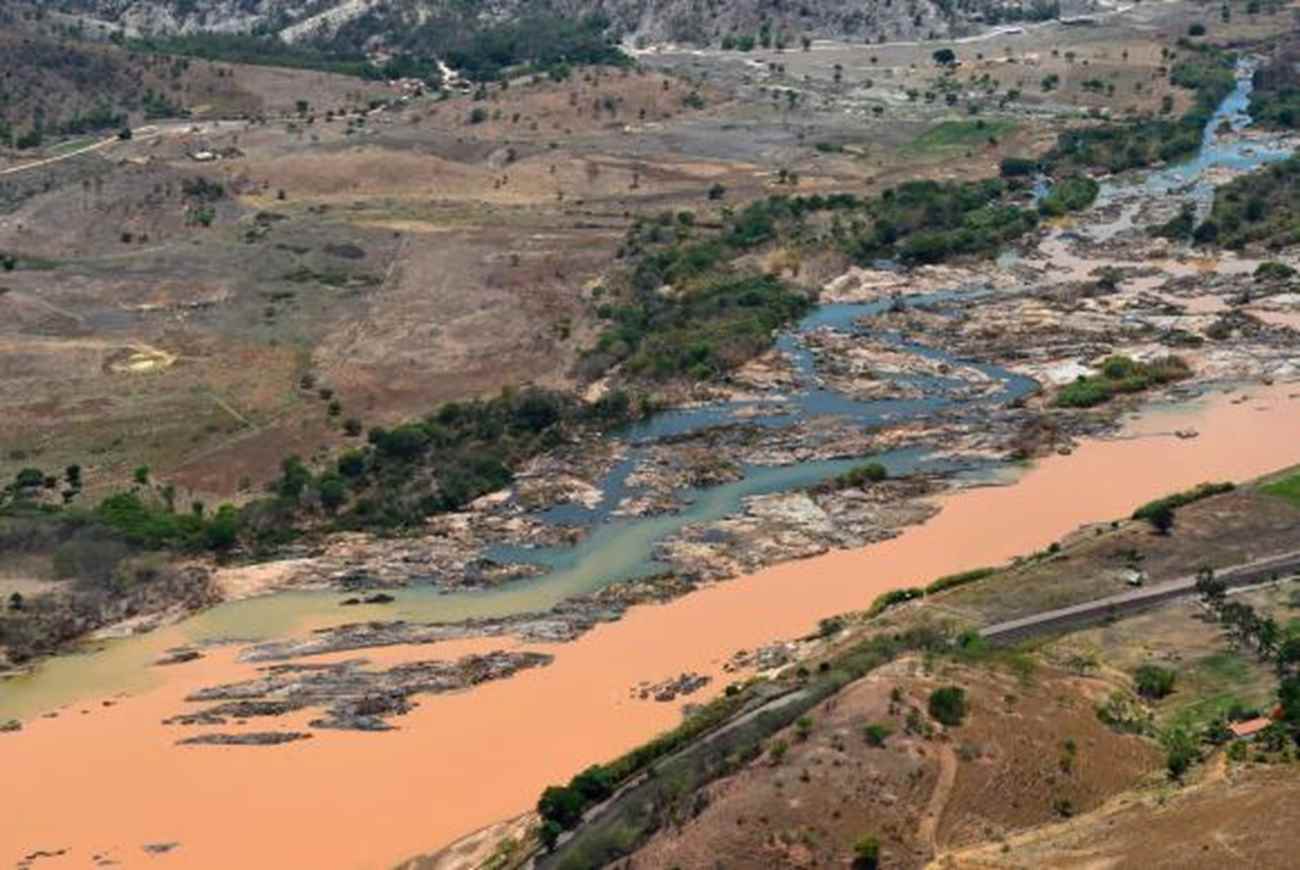 Imagem: Vista aérea mostra a lama no Rio Doce, na cidade de Resplendor (MG) –