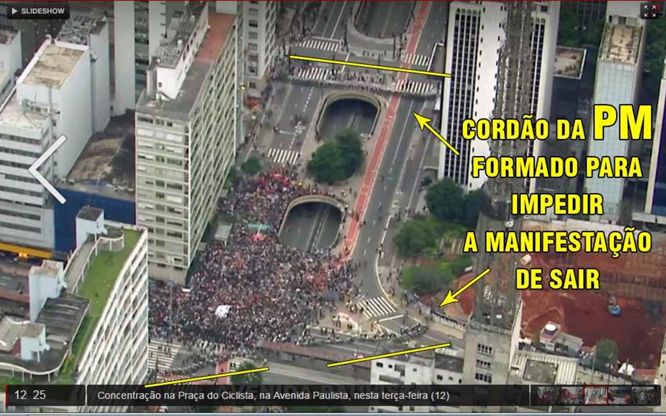 Nas redes sociais, uma foto bem explicativa demonstra como a estratégia Kettling ocorreu.