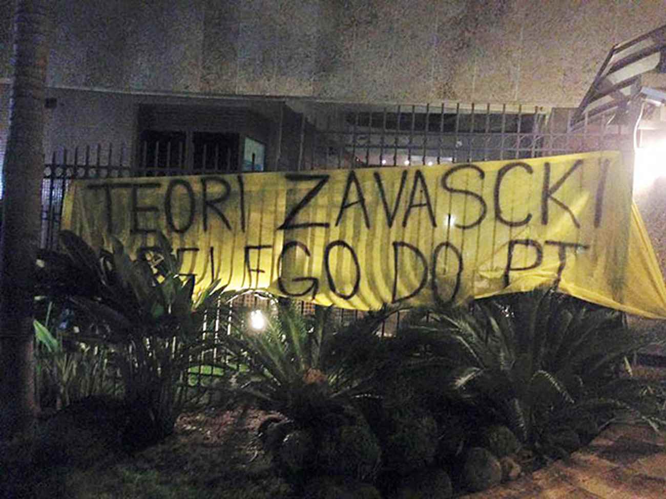 Na noite anterior, 24, os ‘manifestantes’ chegaram a ser 200, de acordo com a imprensa, portando faixas que, entre outras coisas, chamavam o ministro de “cabrita de Lulla”. Foi dos protestos mais calmos, entretanto; Teori Zavascki e familiares chegaram a ser ameaçados, o que levou o Ministério da Justiça a determinar proteção extra para ele. Nas chamadas redes sociais, o incentivo à violência era claro, e um cantor fascista anunciou para a turba o endereço do filho do ministro.