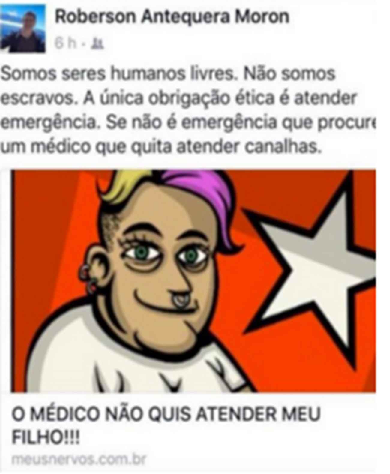 “O PT transformou os médicos brasileiros em párias, tudo para defender o indecente ‘Mais Médicos’, um instrumento de financiamento da ditadura cubana. O PT atenta contra nossos direitos, nossa liberdade, nossa democracia. E depois a vereadora petista quer ser atendida pela pediatra como se não houvesse nada demais, como se não fosse, na prática, uma inimiga dela?! Sai fora!”