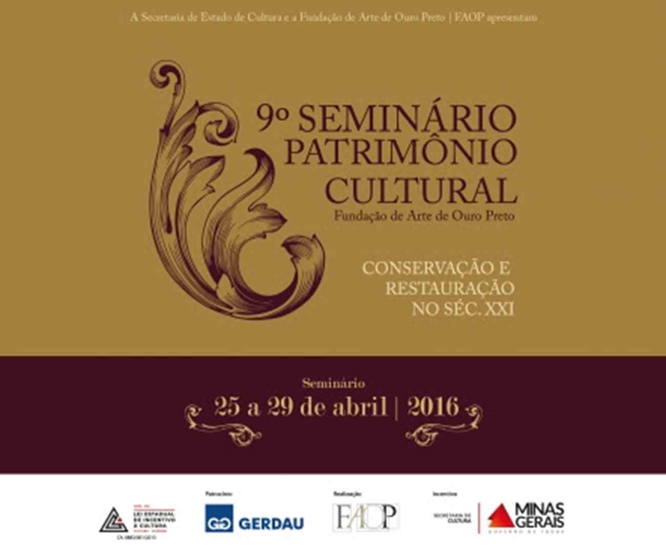 A 9ª edição do Seminário Patrimônio Cultural | Conservação e Restauração no séc. XXI acontece entre os dias 25 e 29 de abril. O evento promove a discussão sobre a preservação dos bens culturais, conceitos e práticas do processo de conservação e restauração.