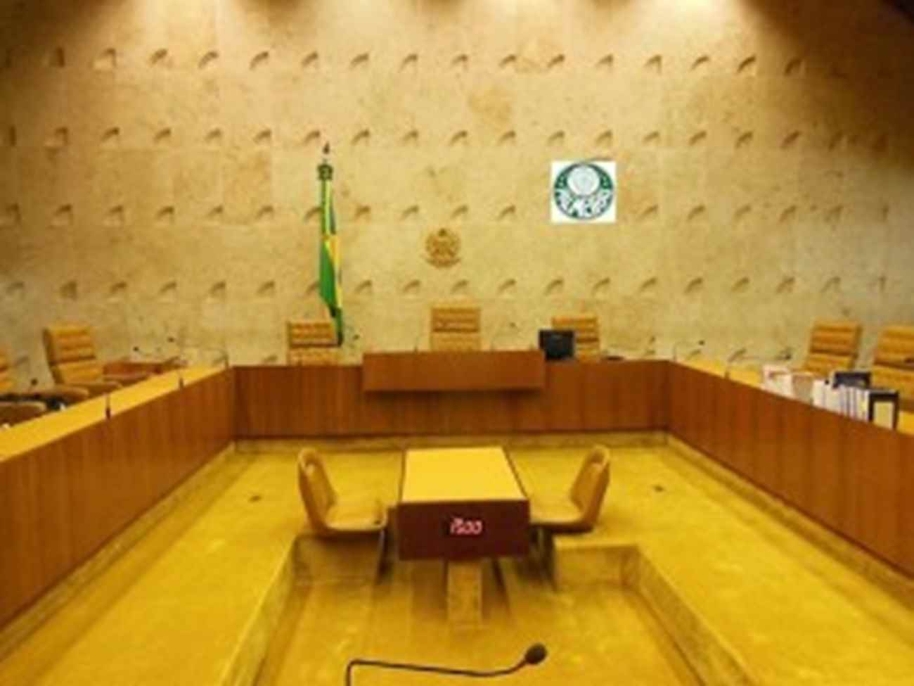Destaque: “E se, no local onde está o crucifixo do plenário do Supremo Tribunal Federal, colocássemos o escudo da gloriosa e centenária Sociedade Esportiva Palmeiras?”. Montagem original do Blog do Sakamoto.