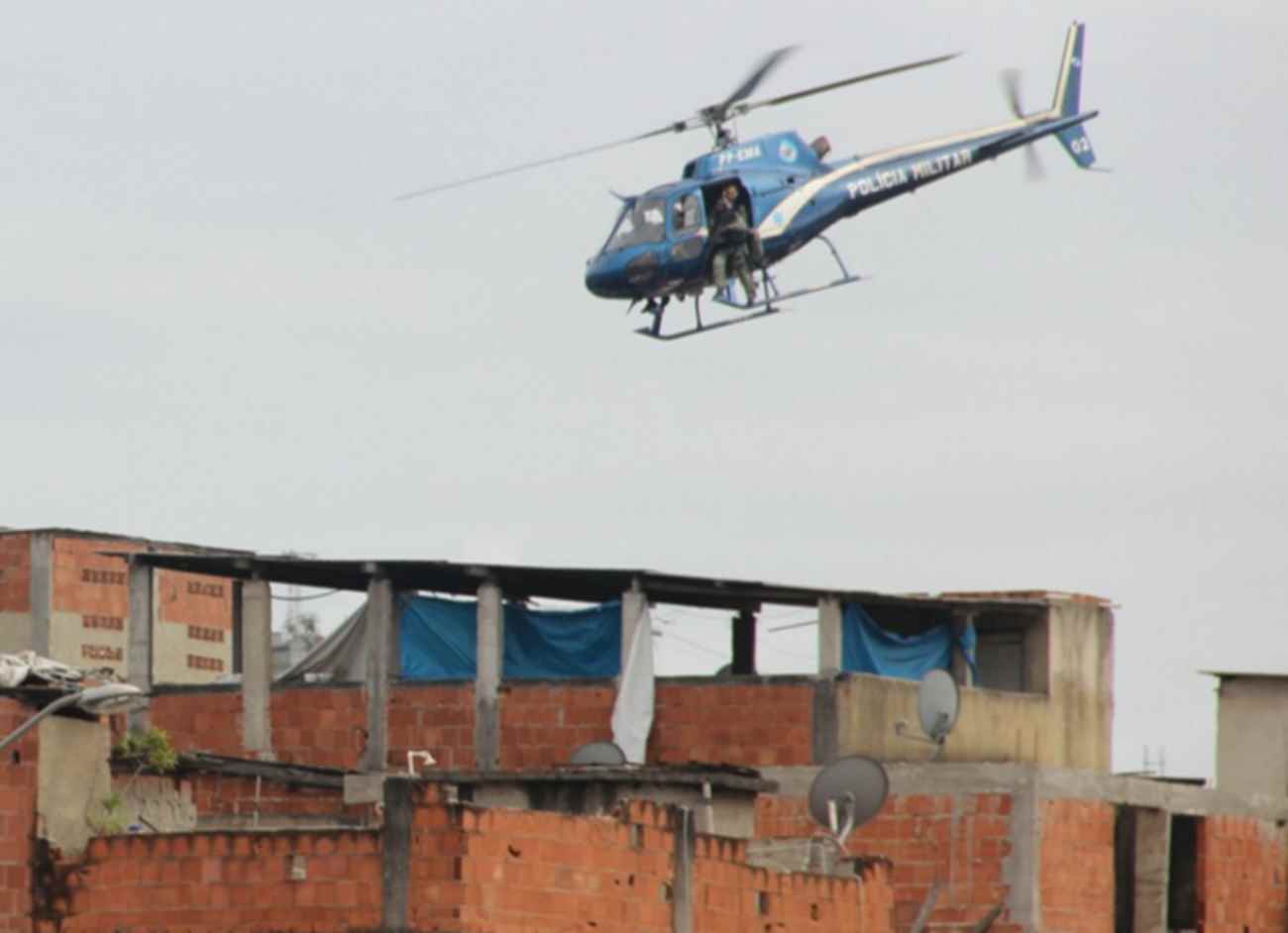 Foto: Helicóptero da PM sobrevoa Manguinhos durante operação de implantação de UPP na comunidade, em 2012 (Vladimir Platonow/Agência Brasil)