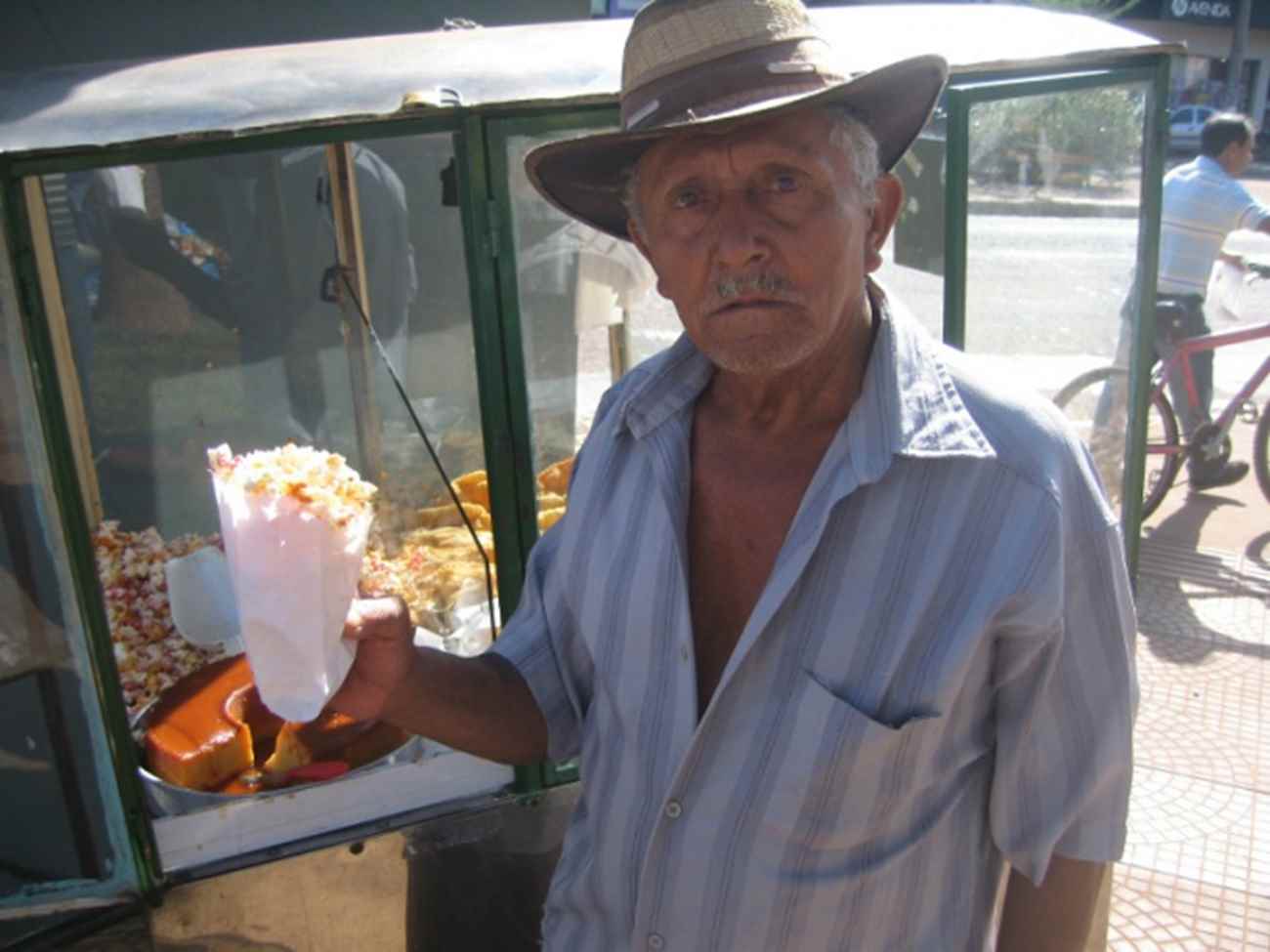 O pipoqueiro Ceará, que ronda por várias ruas de Copacabana, passa e provoca o colega de ofício que estaciona o carrinho de pipoca na frente do cine Roxy, onde descola um troco honesto: “Essa moleza vai acabar, hein, baixim, os homi vão cortar tuas asas e tuas pernas”. “Bota essa boca de praga pra lá, misera, tira o olho gordo do meu negócio”, rebate Paraíba, que vende sua iguaria aos frequentadores do cinemão da rede Kinoplex.