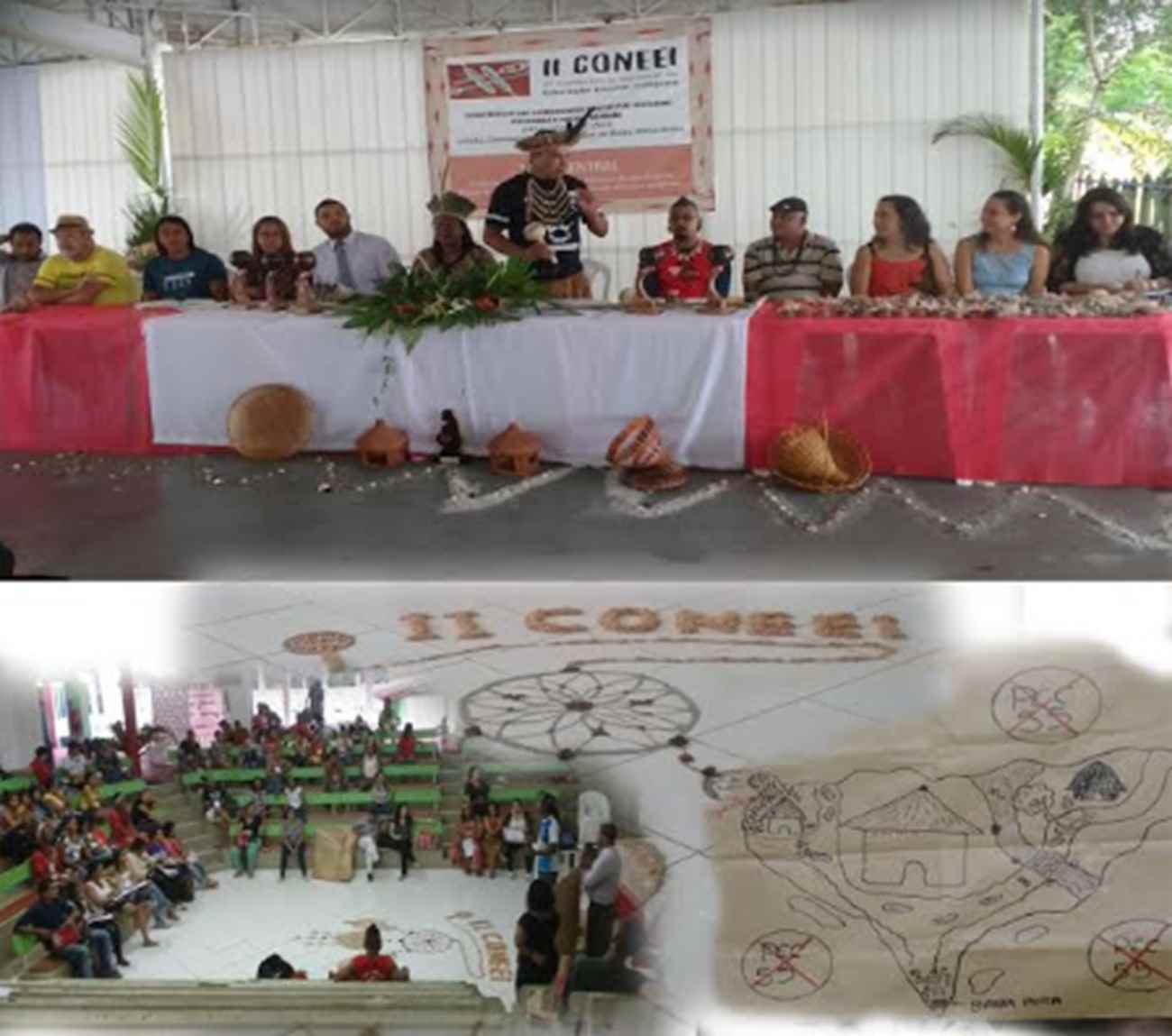 O tema motivador do evento: “O Sistema Nacional da Educação e a Educação Escolar Indígena: Regime de Colaboração, participação e autonomia dos Povos Indígenas”, foi abordado pela Profª Gilvânia Nascimento, presidenta da Uncme. O Profº José Carlos Tupinambá falou um pouco sobre os 05 eixos: I- “Organização e Gestão da Educação Escolar Indígena”; II – “Práticas Pedagógicas Diferenciadas na Educação Escolar Indígena”; III – “Formação e Valorização dos Professores Indígenas”; IV – “Políticas de Atendimento à Educação Escolar Indígena na Educação Básica”; V – “Ensino Superior e Povos Indígenas”. Estes foram os eixos que motivaram os trabalhos em grupos e que duraram toda o dia 16. Ao final das reflexões foram apresentadas uma série de propostas que serão levadas para a Etapa Regional da II CONEEI, estas propostas organizadas pelos respectivos eixos encontram-se no documento final da Conferência.