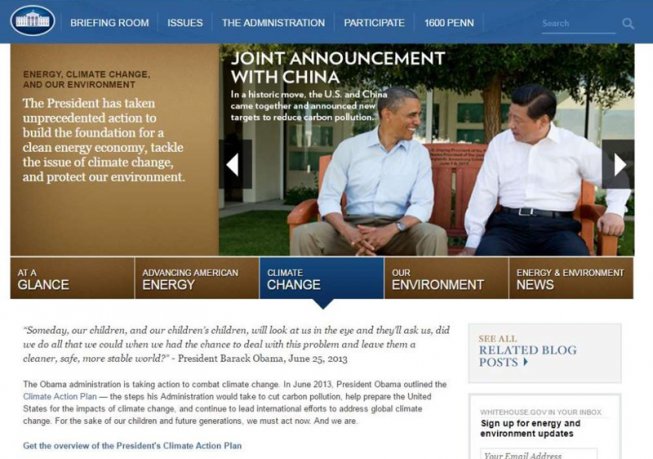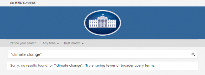 Web de la Casa Blanca borra referencias al cambio climático [e diz que Trump adotará “revolução do petróleo e gás”]
