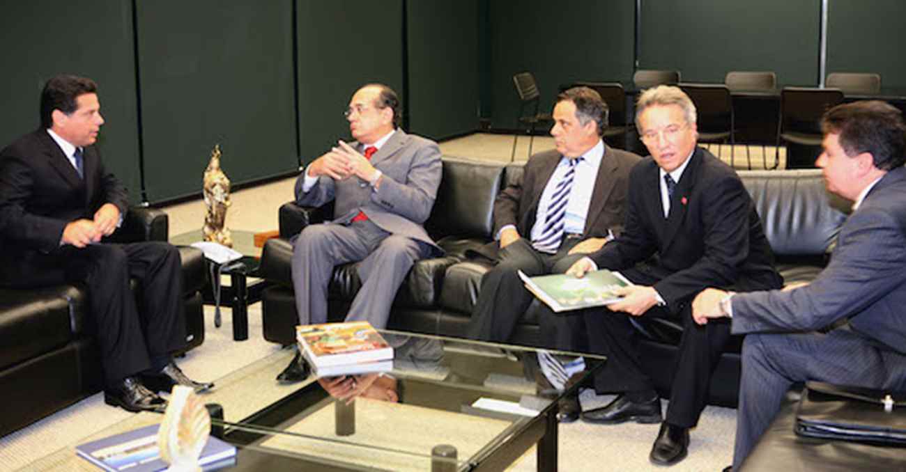 Imagem: Gilmar Mendes recebe o grupo Eternit e a ”bancada do Crisotila” no STF (Foto: Gervásio/SCO/STF).