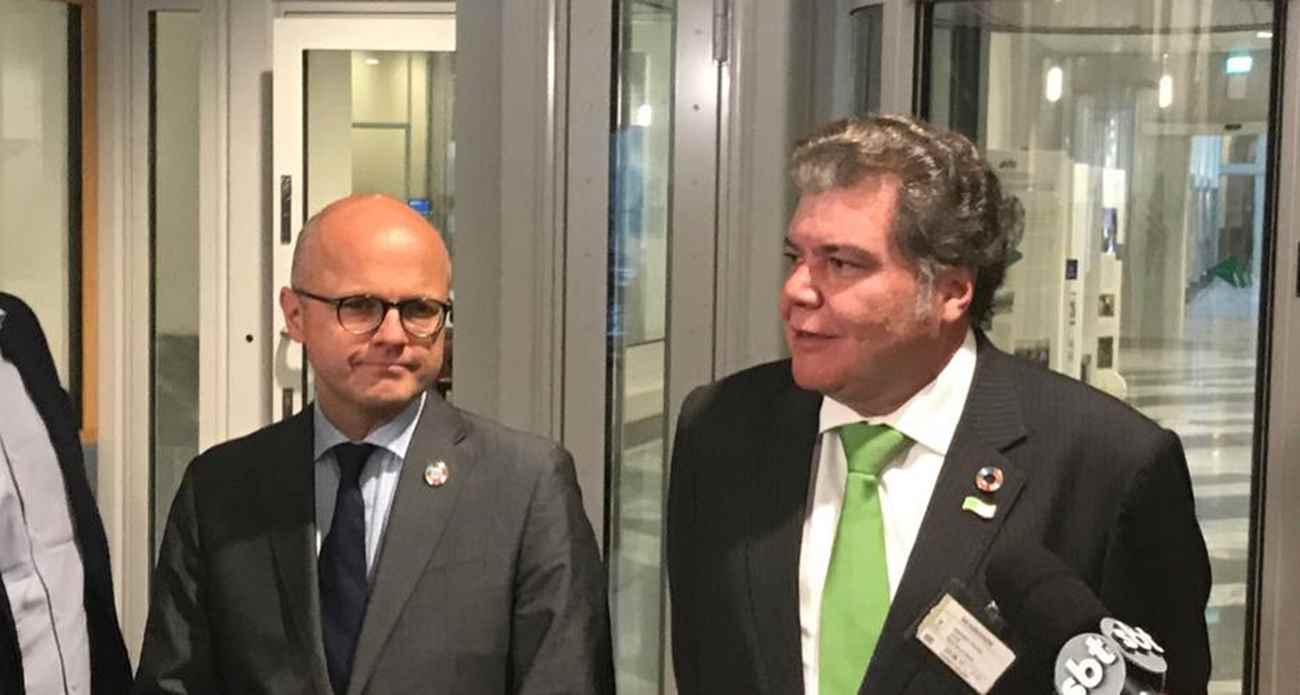 Os ministros do Meio Ambiente da Noruega, Vidal Helgeser, e do Brasil, Sarney Filho, reuniram-se nesta quinta-feira em Oslo Foto: Jamil Chade /Estadão