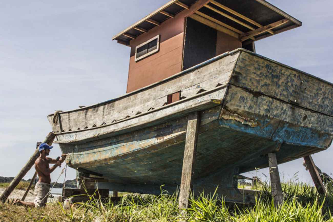 A madeira que o artesão precisa para construir canoas vem de unidades de preservação ambiental, locais onde sua extração é proibida. O Parque Estadual da Serra do Mar, criado em 1977, com uma área de 332 mil hectares que se estende por 25 municípios paulistas – desde a divisa do estado com o Rio de Janeiro até o litoral sul de São Paulo – era um território caiçara. “Nos expulsaram, até hoje os pescadores esperam a indenização e agora não podemos nem retirar uma madeira para trabalhar”, relata o canoeiro.