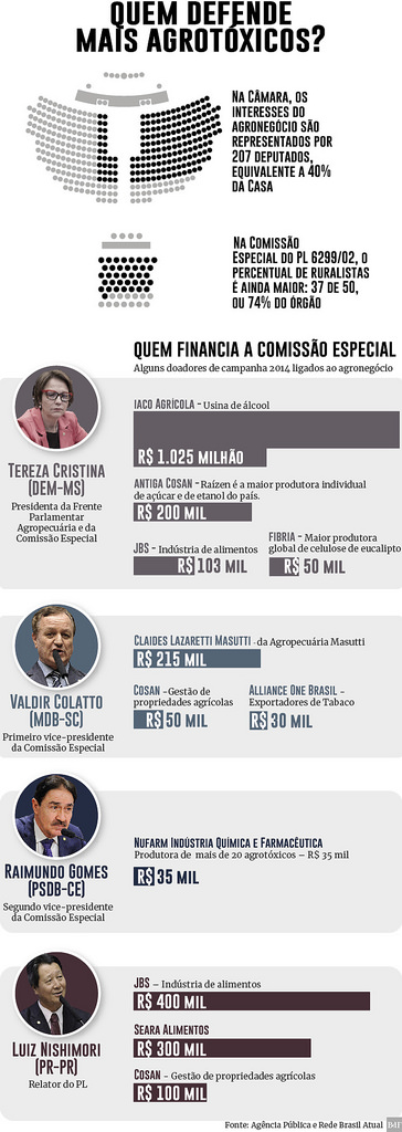 “É uma bancada de muito poder. A votação do ‘Pacote do Veneno’ é um indicador do predomínio dos interesses contrários à maioria da população no Congresso. O número de ruralistas no Parlamento tem que ser entendido pela perspectiva de quem financiou as campanhas eleitorais desse setor. O povo sabe bem que quem paga a banda escolhe a música. Os interesses econômicos estão ligados à indústria do veneno”, diz.