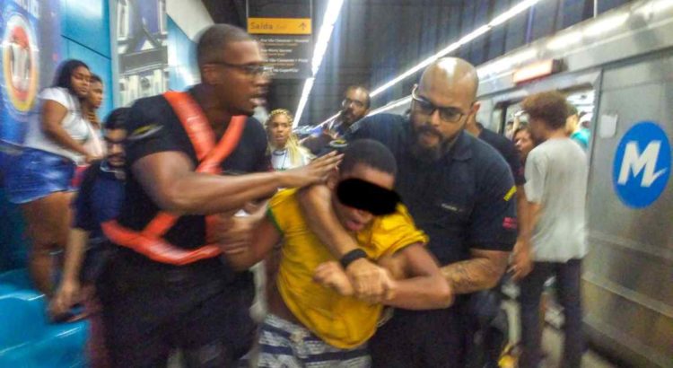 Uma criança de 12 anos foi retirada à força por seguranças da estação Botafogo do metrô, na última quinta-feira (28/2), no Rio de Janeiro. Imagens mostram que um dos funcionários dá uma “gravata” no menino, que começa a chorar e gritar “está me machucando” enquanto outro o arrasta pelo braço.
