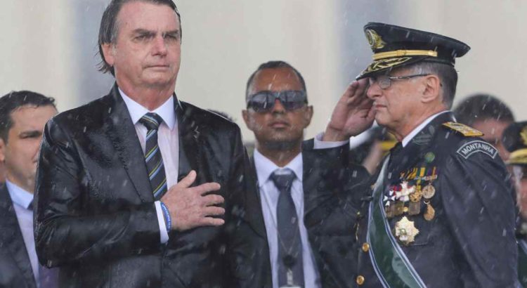 Imagem: Bolsonaro e o Comandante do Exército, Edson Pujol, durante cerimônia em Brasília no dia 17 de abril – SERGIO LIMA (AFP)