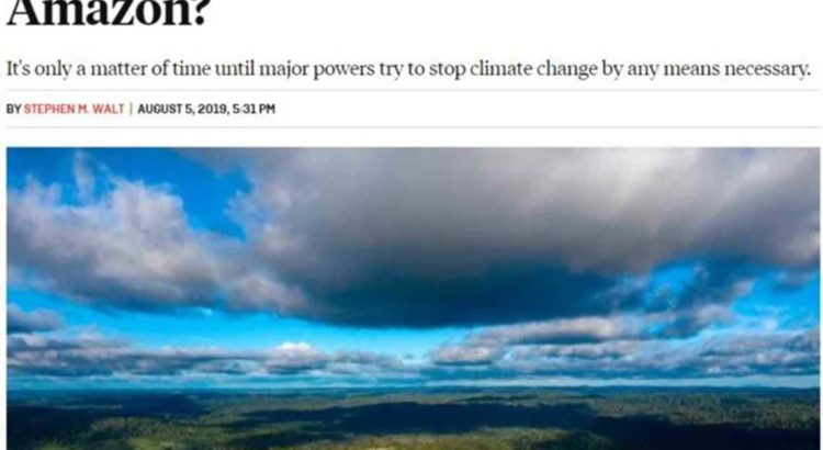 Walt, autor de livros sobre a política externa americana, a força do lobby israelense nos EUA e as ligações entre revoluções e guerras, e formulador da “teoria do equilíbrio da ameaça”, reconhece que se trata de um cenário exagerado. Mas o objetivo central do artigo é questionar se é ou não possível justificar com regras do Direito Internacional ataques e sanções ao Brasil com base no argumento de que a destruição da Amazônia é um problema de todos.