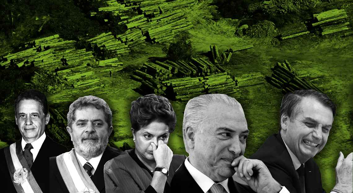 Durante o primeiro ano do governo Bolsonaro, em 2019, o desmatamento na Amazônia aumentou 85% em comparação ao ano anterior, de acordo com o Instituto Nacional de Pesquisas Espaciais (Inpe). A propensão de piora é confirmada com os dados de janeiro, quando o crescimento foi de 108% em relação ao mesmo período do ano passado. Foram 284 quilômetros quadrados de floresta devastados.