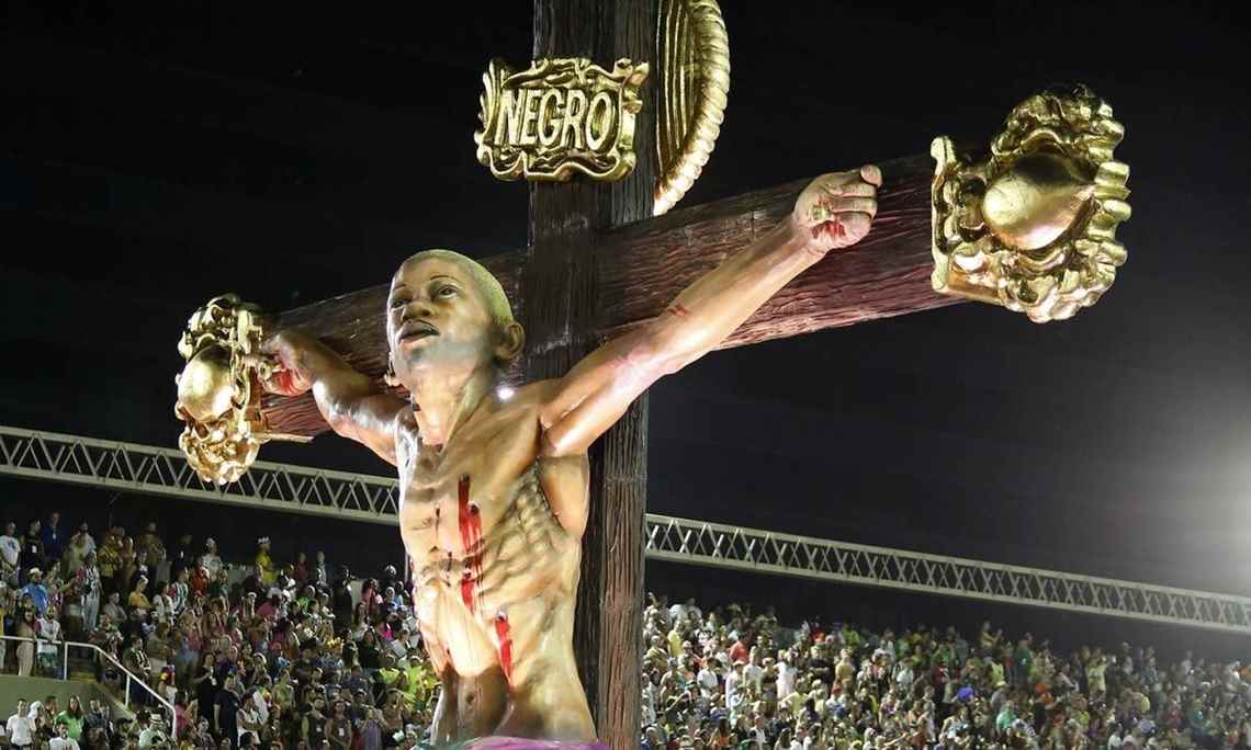 Carnavalescos responsáveis pelo carro alegórico tiveram que remover o símbolo nessa segunda-feira, após recomendação das autoridades.