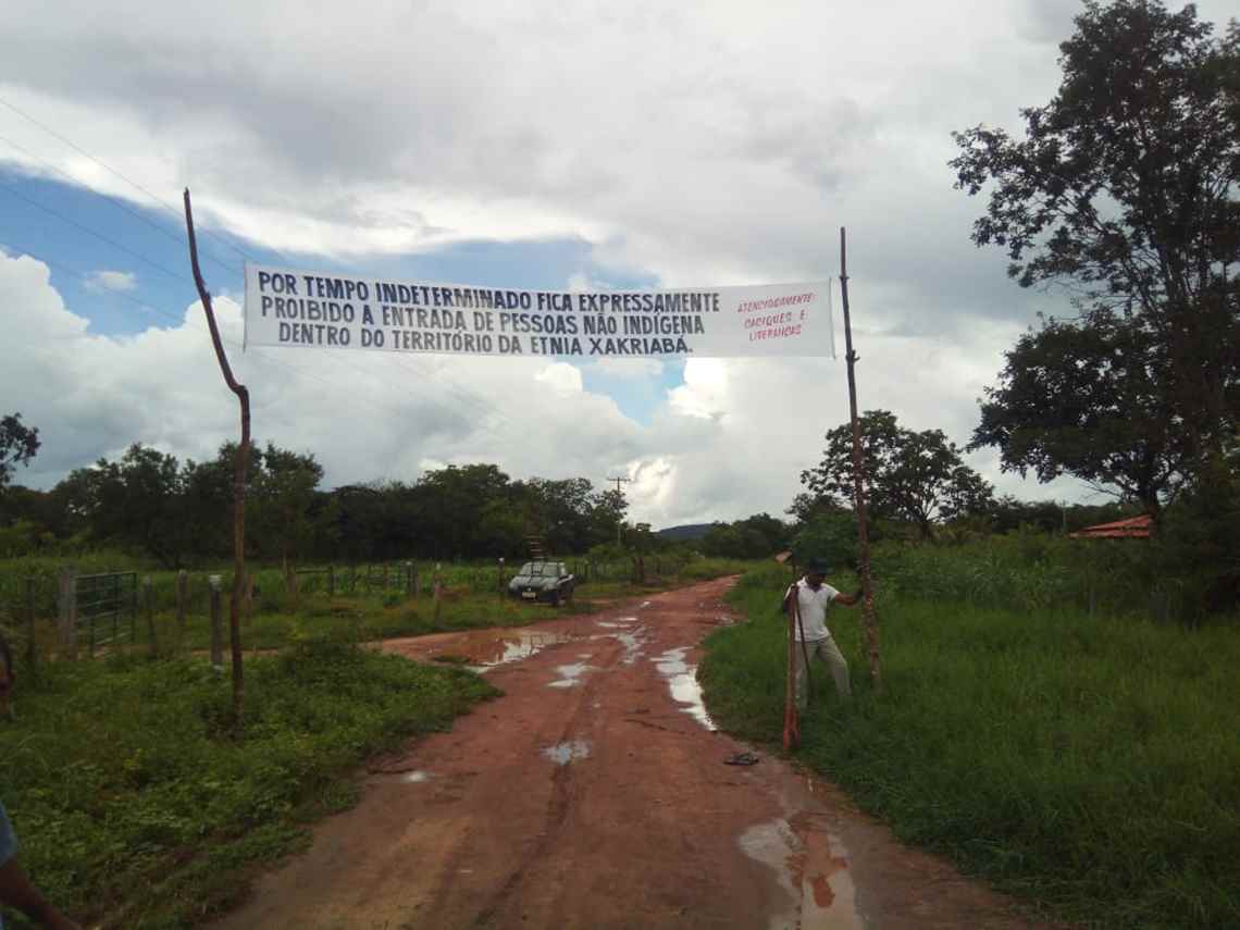 Barreiras criada pelos indígenas nas entradas da aldeia respeitam as recomendações sanitárias e controlam a entrada de visitantes. Policiais ameaçam voltar com contingente maior