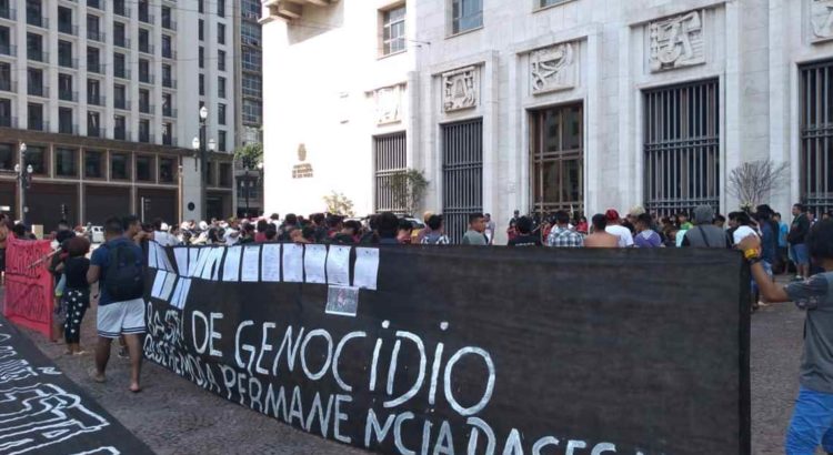Protesto Guarani, em São Paulo, por melhorias no subsistema de saúde indígena. Crédito da foto: Cimi Regional Sul/Equipe São Paulo
