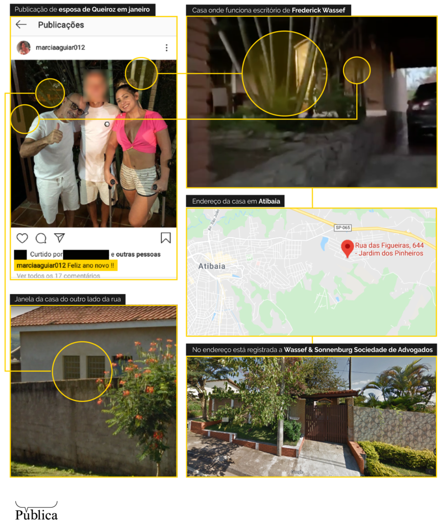 Mas, Márcia Aguiar, mulher de Queiroz, postou no dia primeiro de janeiro deste ano uma foto em uma casa que seria a de Atibaia, segundo revelou a fonte à reportagem, contrariando a versão do caseiro de que o policial militar aposentado estava há apenas quatro dias no local. A reportagem confirmou que o perfil de Marcia existe no Instagram, mas é privado. Ela também teve prisão decretada pela Justiça. O mandado de prisão foi expedido para o mesmo endereço onde Queiroz estava, mas ela não se encontrava no local e é considerada foragida.