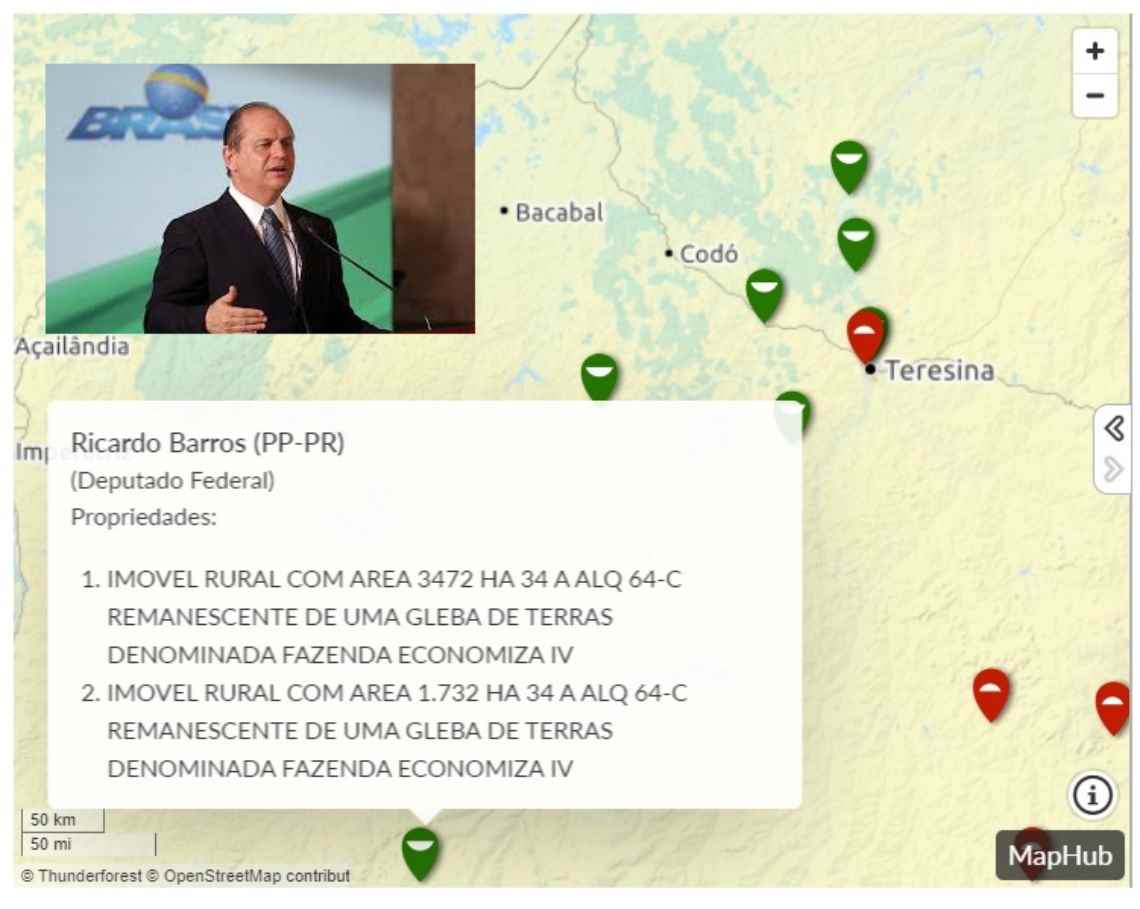 Imagem principal (De Olho nos Ruralistas): Mapa das Terras dos Parlamentares, divulgado em 2019