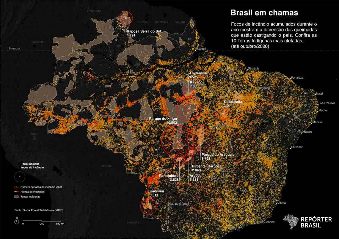 A viagem de embaixadores europeus à Amazônia, liderada por Mourão & Cia., parece não ter sensibilizado o ministro-general Augusto Heleno, que acompanha a comitiva. Em uma declaração no mínimo curiosa, o chefe do SN… ops, Gabinete de Segurança Institucional (GSI) minimizou o recorde histórico de queimadas na floresta. “Passamos por cima e ressaltamos que tem algumas áreas de queimada, mas isso é totalmente deturpado, porque é colocado fora de contexto, que é uma coisa majestosa, e fica virando uma fogueirinha ali. Isso é ruim pra gente”. Heleno afirmou também que, se a floresta estivesse realmente pegando fogo, ia “chegar fumaça em Londres e Paris”. Mas, de acordo com o INPE, o total de queimadas no Amazonas, palco da excursão diplomática, chegou a 16.333 em 2020, sendo 153 focos ativos apenas nos primeiros dias de novembro. Este já é um recorde anual histórico para o estado.