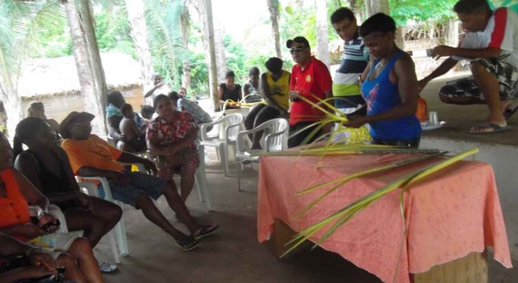 Imagem: Oficina de práticas artesanais com urubamba, arquivo DGM Brasil, 2014.