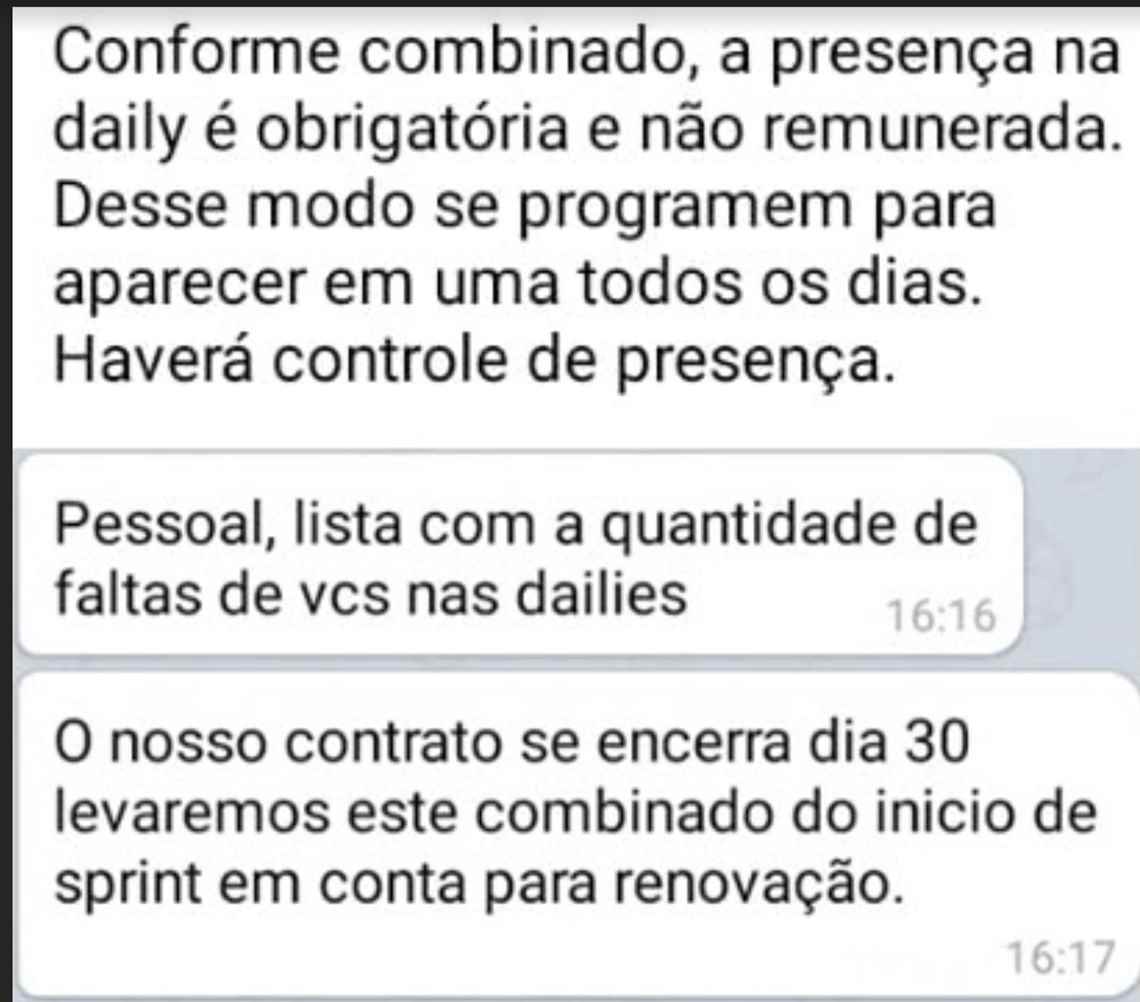 Mensagens pelo aplicativo de mensagens Telegram enviadas aos professores por gestores deixam claro que os vídeos são obrigatórios e sem remuneração. O recado ainda tem outra observação: haverá controle de presença.