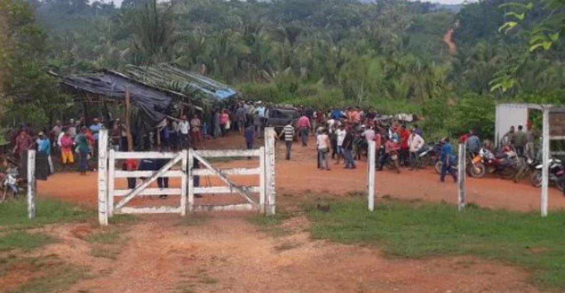 Grupo de invasores cercou, em novembro de 2020, a base de operações do Ibama e da Funai na Terra Indígena Apyterewa, no Pará. Imagem: Reprodução