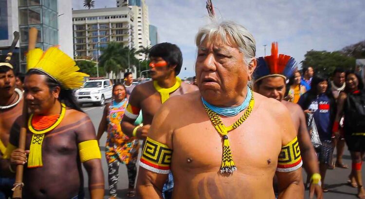 Megaron Txucarramãe – Estou de novo em movimento com outros parentes indígenas de todos os Estados do Brasil contra o projeto de lei votado no Congresso (PL 490/2007) que tenta alterar direitos garantidos nos artigos 231 e 232 da Constituição Federal, escritos em 1988 pelos deputados nos dando direito de ocupar terras tradicionais. Eles querem agora modificar terras indígenas demarcadas, homologadas de acordo com a Constituição. Tudo isso está sendo mudado. E estou, depois de tantos anos de isso tudo aprovado, com jovens indígenas fazendo um movimento contra esse projeto.