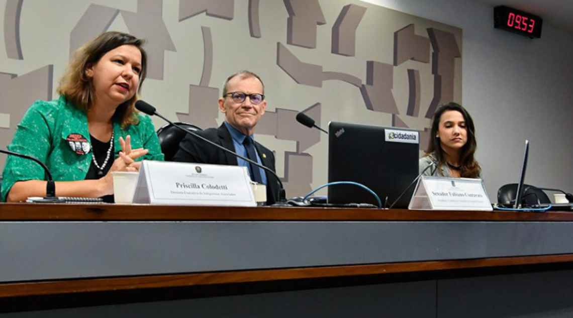 Alessandra Farias, da Sociedade Maranhense de Direitos Humanos (SMDH), Andréia Silvério e Carlos Lima, da coordenação nacional da CPT, Darci Frigo, da Plataforma Dhesca, Sandra Maria, da Coordenação Nacional de Articulação de Quilombos (Conaq), e Jordana Ribeiro, do Movimento dos Trabalhadores e Trabalhadoras Rurais Sem Terra (MST), também compuseram a mesa.
