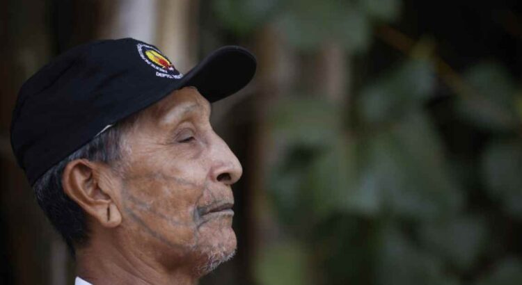 Aripã, ancião Karipuna, durante viagem a Brasília para denunciar situação de seu território, em setembro de 2022. Foto: Adriano Machado/Greenpeace