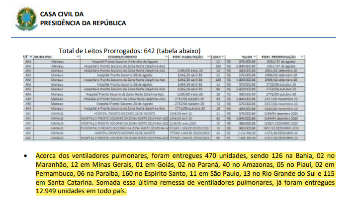 A pasta registrou ainda neste dia que entregou 470 ventiladores para 13 estados, sendo que 40 foram enviados para o Amazonas.