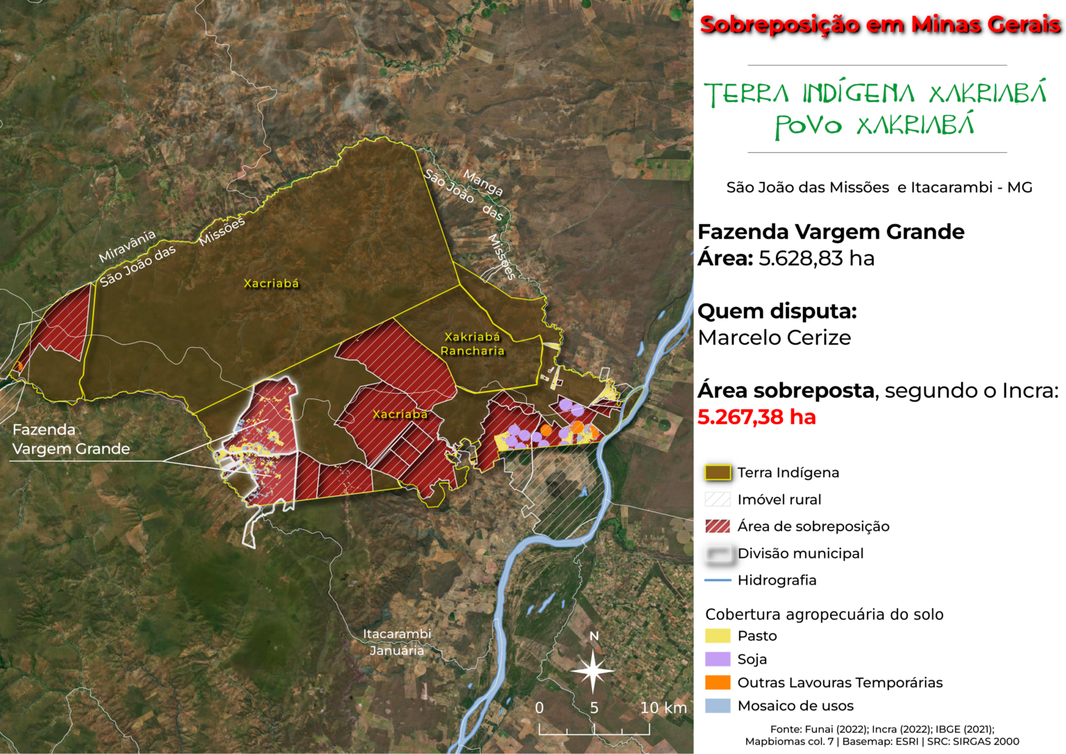 Confira, no mapa, a sobreposição da Fazenda São Judas Tadeu sobre a área de reestudo da TI Xakriabá: