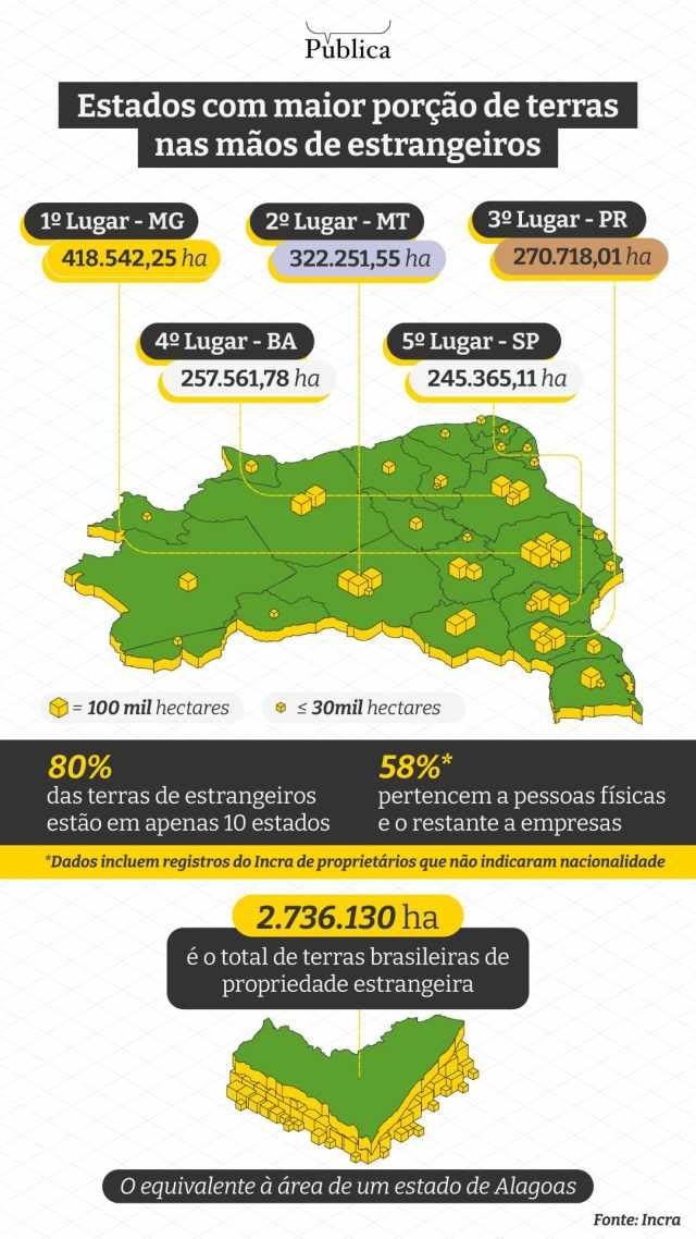 Para especialistas ouvidos pela Pública, não é exagero dizer que o total de terras sob controle estrangeiro no Brasil seja maior do que os 2,7 milhões de hectares já identificados pelo Incra.