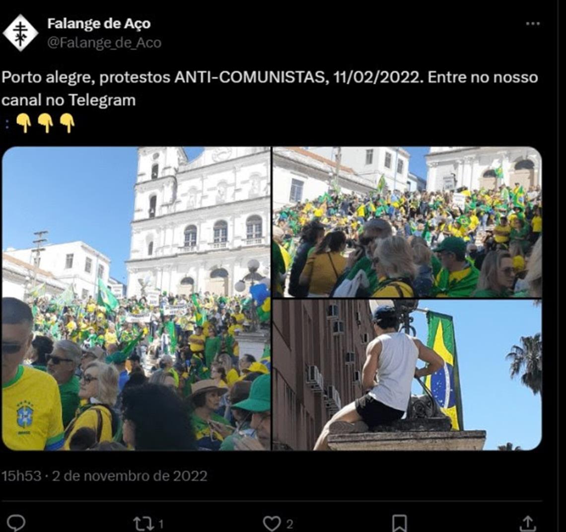 Publicação na rede social X do grupo nacionalista branco, Falanges de Aço