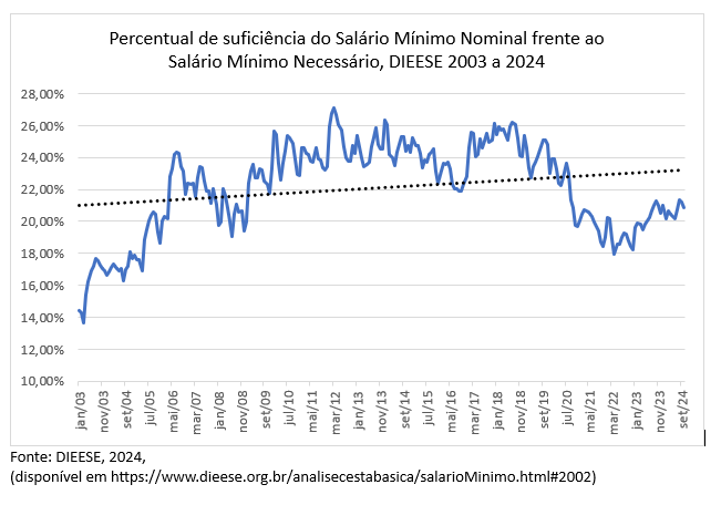 O salário mínimo, mantidos esses números, chegaria a janeiro de 2025 com uma defasagem de quase dois pontos percentuais em relação à inflação de 2024 sendo que, nesse então, teria que enfrentar pela frente os doze meses de inflação de 2025.