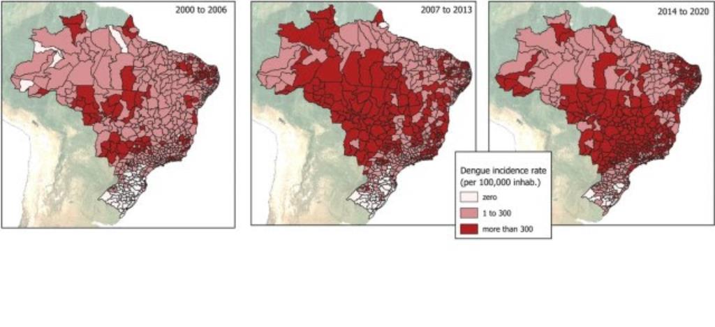 Além disso, uma epidemia de dengue passou a grudar na outra, eliminando anos de intervalo – 2022, 2023 e 2024 foram todos de epidemia.