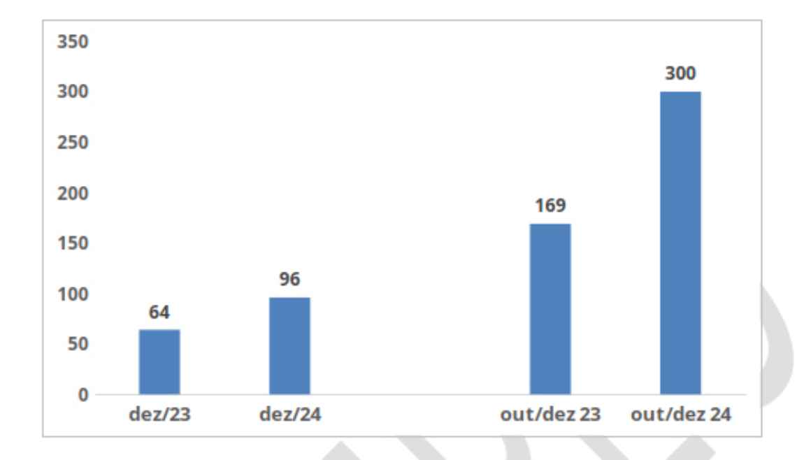 Caso a comparação seja entre os valores do segundo semestre dos dois exercícios considerados, a diferença também é expressiva. Para o período julho/dezembro de 2024, o total de despesas com juros alcançou R$ 496 bi. Esse montante representou um crescimento de 30% em relação aos R$ 381 bi verificados no mesmo período de 2023.