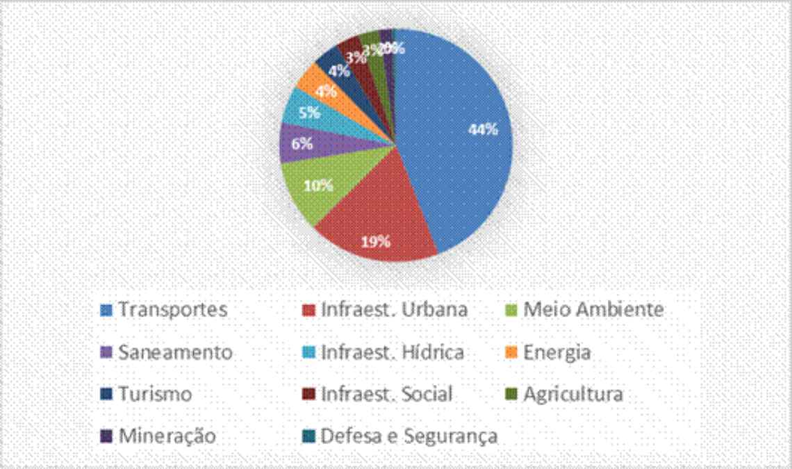 Já a página do governo federal dedicada ao tema de PPPs e concessões apresenta um total de 211 projetos em andamento. Trata-se do Programa de Parcerias de Investimentos (PPI), que está instalado no interior da Casa Civil da Presidência da República. Ali podem ser consultados os detalhes de cada um dos projetos em andamento. A maior concentração ocorre nas áreas de transporte (44%) e infraestrutura urbana (19%), que concentram juntas quase 2/3 do total. Na sequência surgem os projetos de meio ambiente (10%) e de saneamento (6%).