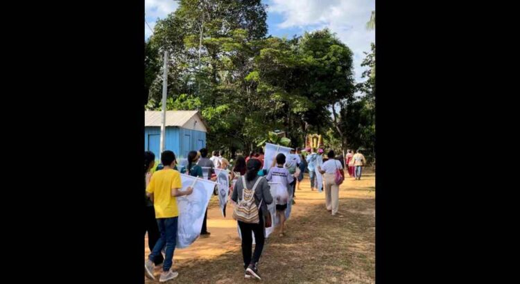 Durante a caminhada, reflexões profundas ecoaram sobre a grave situação ambiental vivida na região do Médio Purus. O dragão da morte — representado pelas forças do agronegócio predatório, do garimpo ilegal, da grilagem e da financeirização da natureza — avança feroz sobre a floresta e seus povos. Os sinais do chamado “ponto de não retorno” são cada vez mais visíveis: queimadas, secas históricas, contaminação dos rios e doenças que assolam comunidades.