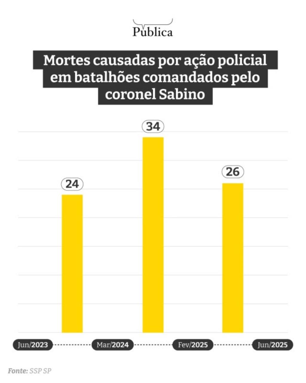 Durante os nove meses de sua gestão, que durou até março de 2024, os policiais militares subordinados a Sabino mataram 24 pessoas. O número é maior do que todas as mortes no ano de 2022, quando o mesmo batalhão registrou 21 mortes em decorrência de intervenções policiais.