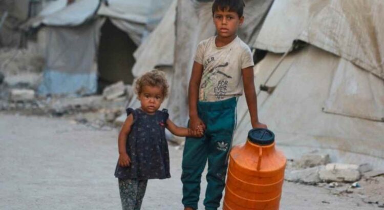 Crianças palestinas na Cidade de Gaza nesta sexta-feira (29). Foto: Bashar TALEB / AFP