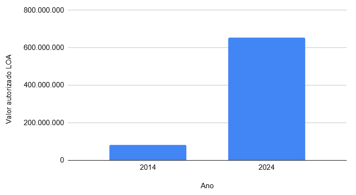 Emendas parlamentares autorizadas na LOA (2014 e 2024)