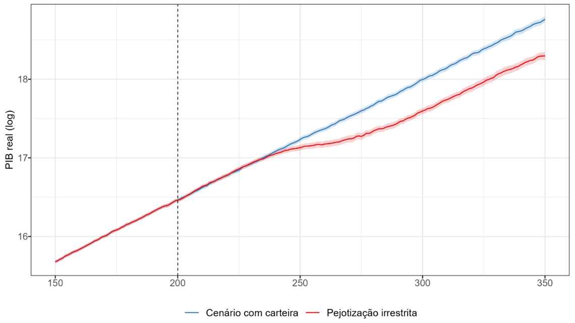 Figura 1. Evolução do PIB real no cenário de pejotização irrestrita e no cenário com carteira