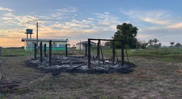 Queima da casa de reza e centro espiritual do povo Puruborá. Foto: povo Puruborá.
