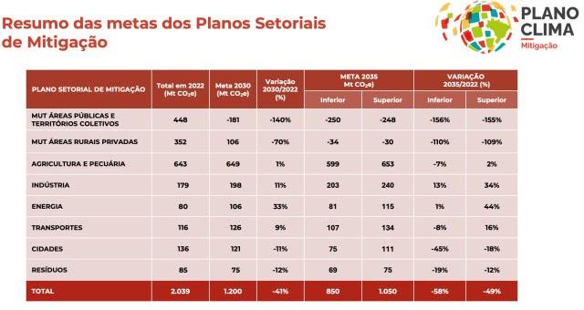 A estratégia nacional de mitigação e os oito planos setoriais que compõem o Plano Clima serão publicados nesta terça-feira (16), no Diário Oficial da União, mas algumas informações já estão disponíveis.