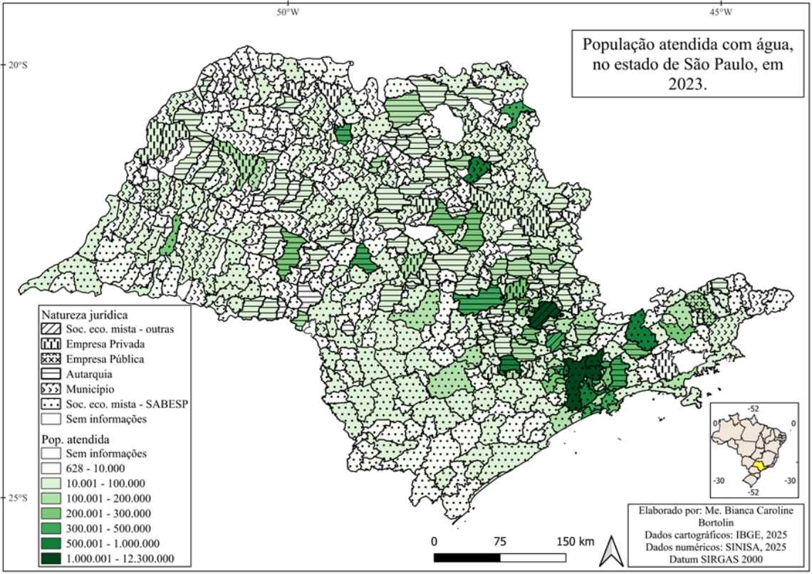 Figura 2 – População atendida com abastecimento de água e natureza jurídica dos prestadores de abastecimento, no estado de São Paulo, em 2023.