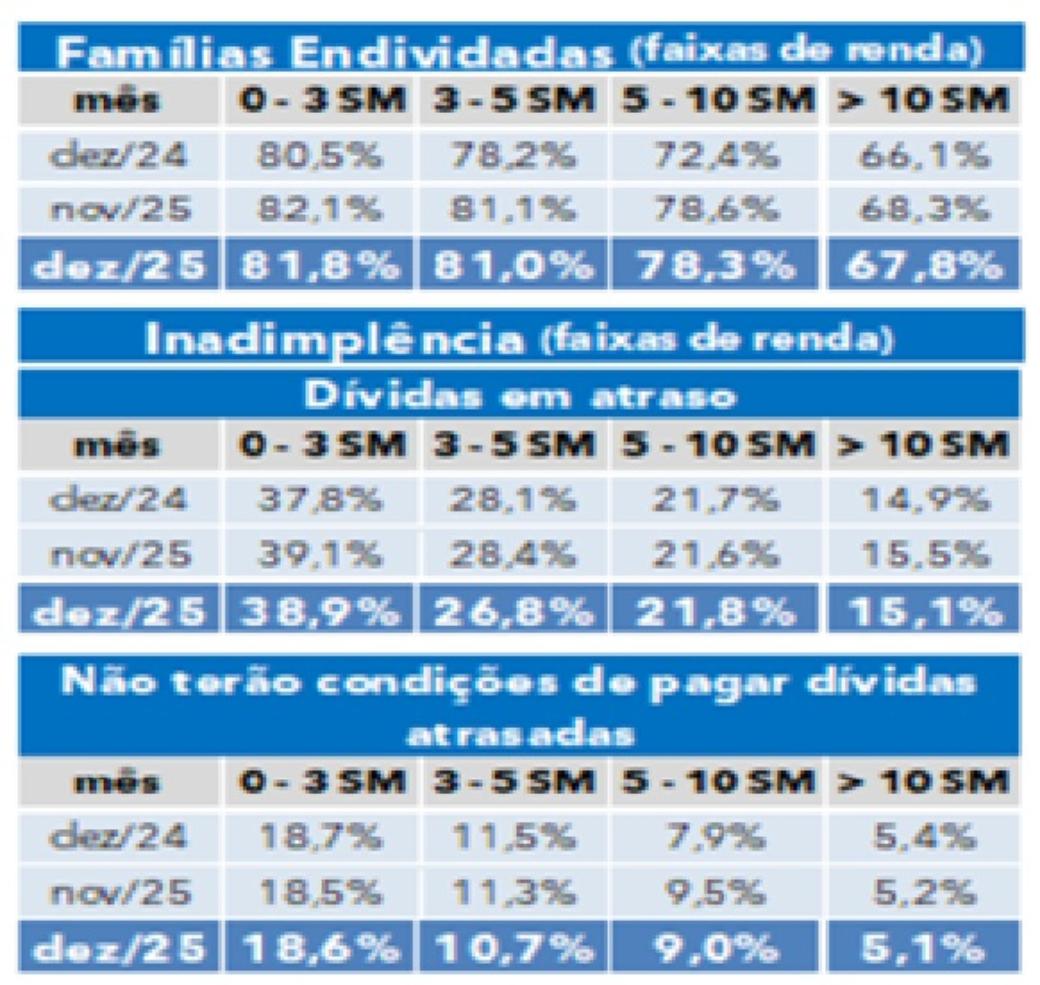 Pesquisa de Endividamento das Famílias – dezembro 2025