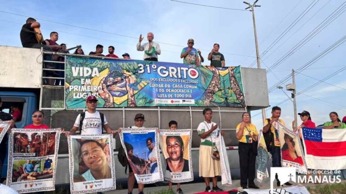 Comunidade e familiares de vítimas do massacre do Rio Abacaxis reivindicam justiça durante o 31º Grito dos Excluídos em Manaus (AM)